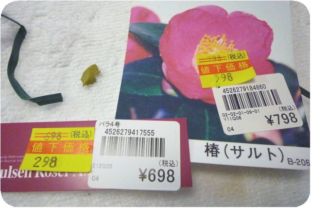 椿とミニバラも見切り品になってて、買ってしまったの。