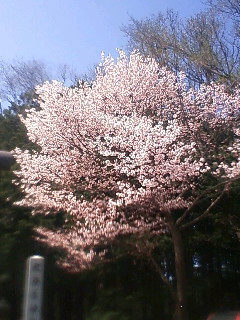 でもこの天気の良さからか、今朝職場の桜が咲いてました。