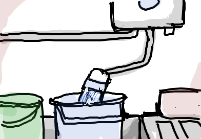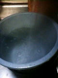 台所のガス湯沸かし器で熱湯をだし、バケツ(2ヶ)に溜め…