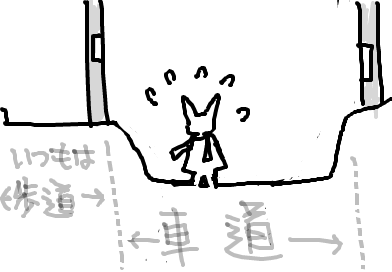 まだ朝だから、歩道に除雪も入っていないのです。焦ります。